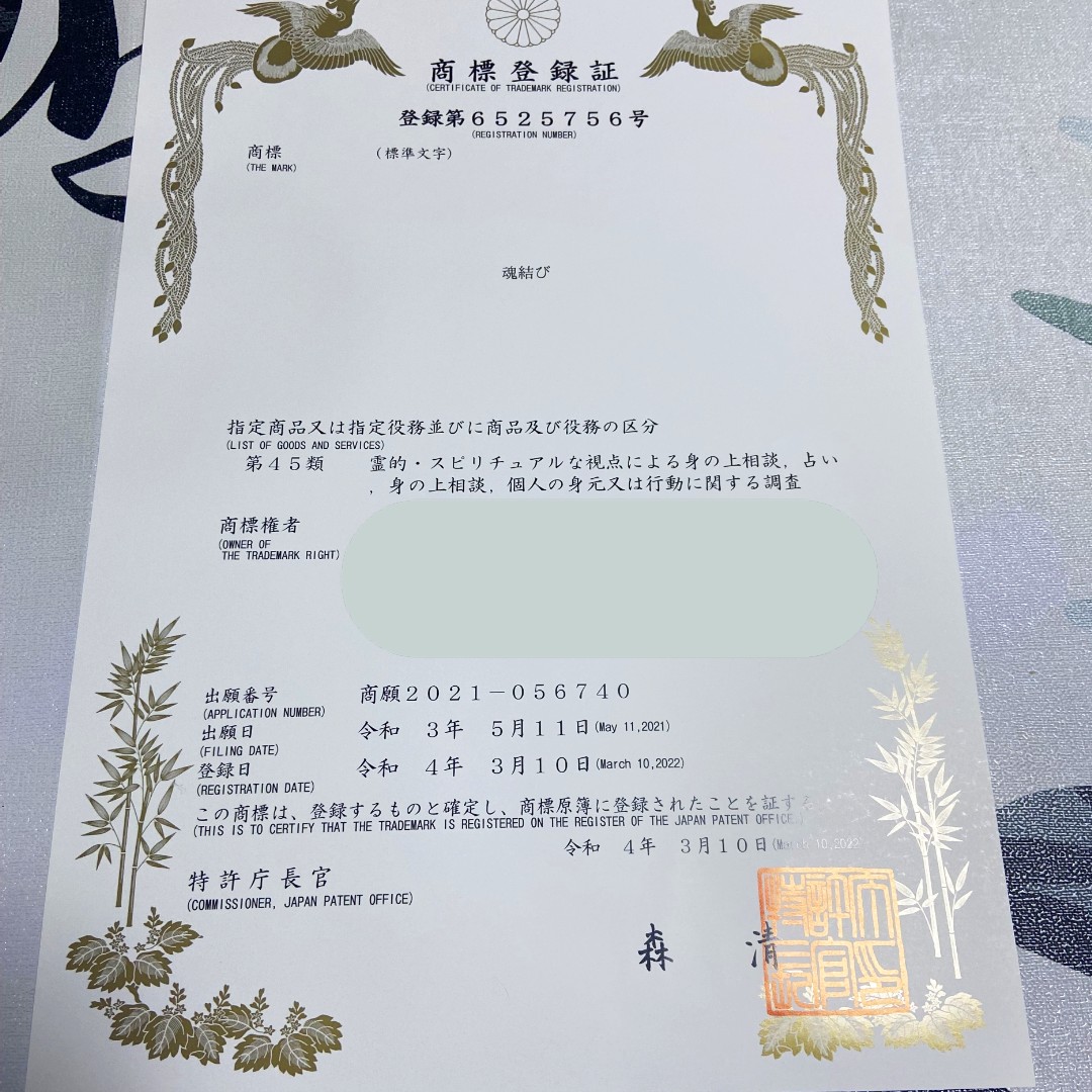 魂結び®は、特許庁への商標登録を完了している大日女の占術です。
